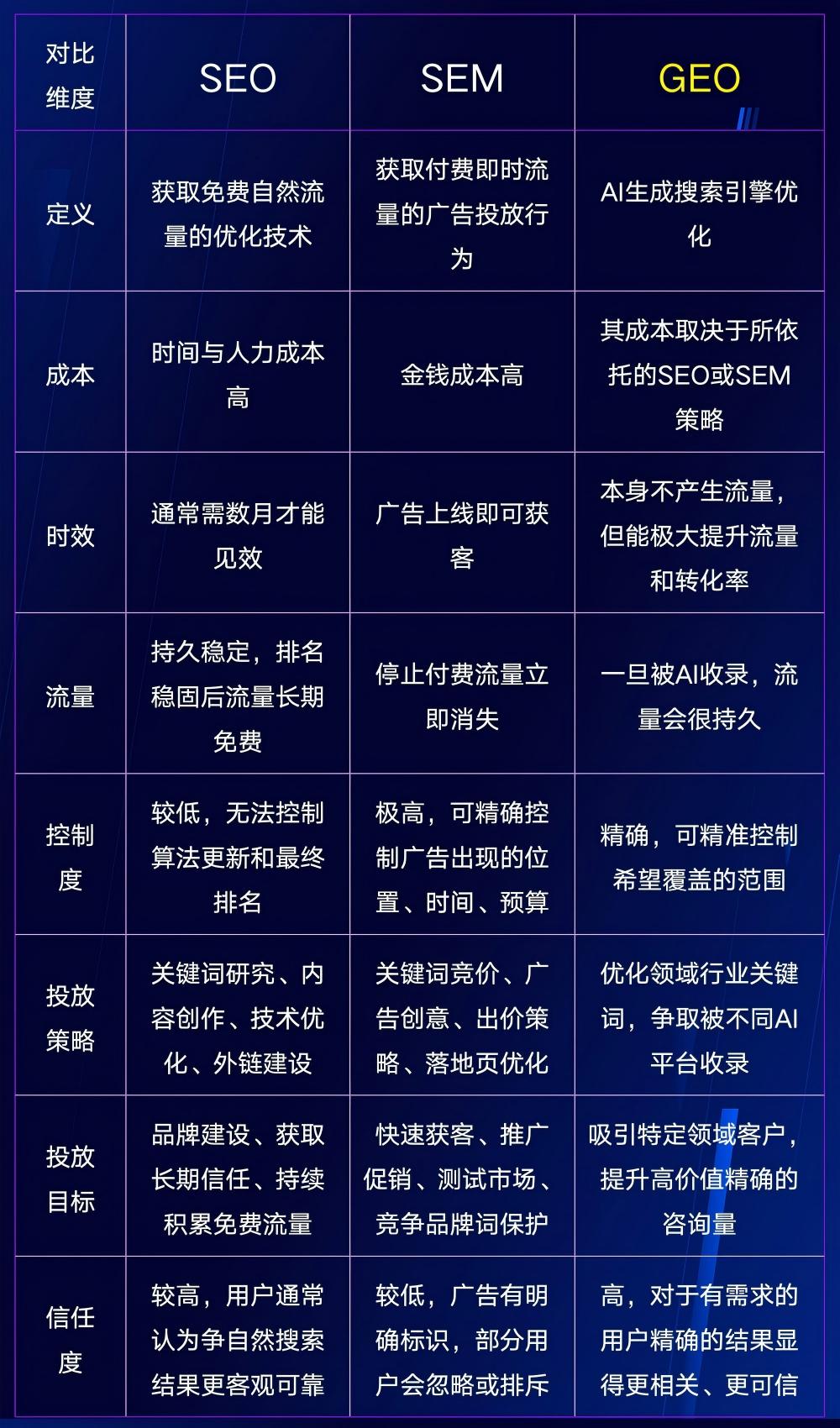 一张图搞懂SEO、SEM、GEO